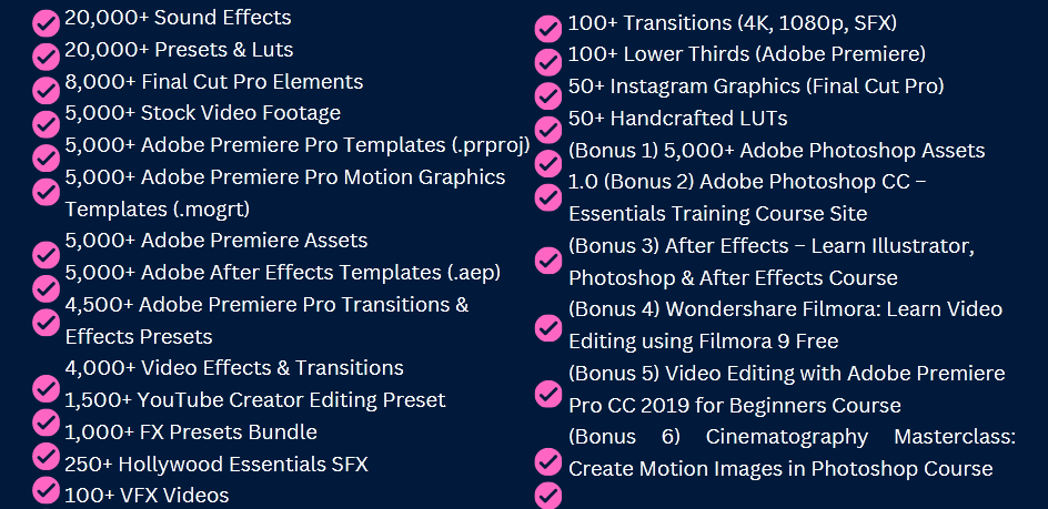 Supercharge your video editing projects with the All-In-One Video Editing Assets Bundle. Packed with over 100,000 premium resources, this bundle includes everything from sound effects, presets, and LUTs to templates for Adobe Premiere Pro, After Effects, Final Cut Pro, and more. Enhance your creativity with stock footage, transitions, and specialized effects. Plus, enjoy bonus Photoshop assets and essential video editing courses. With full resell rights included, this bundle is not just a tool but a business opportunity. Perfect for content creators, filmmakers, and anyone looking to elevate their video production game.